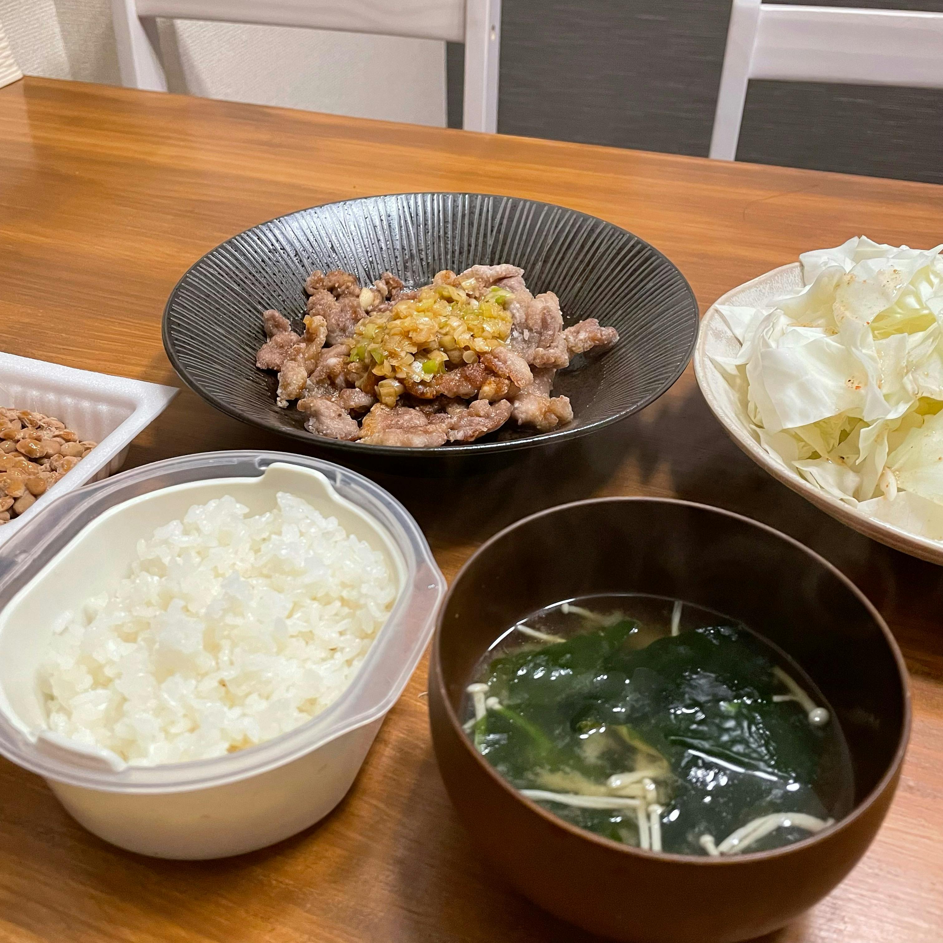 ・豚こま油淋鶏 ・白米 ・サラダ ・お味噌汁 ・納豆
