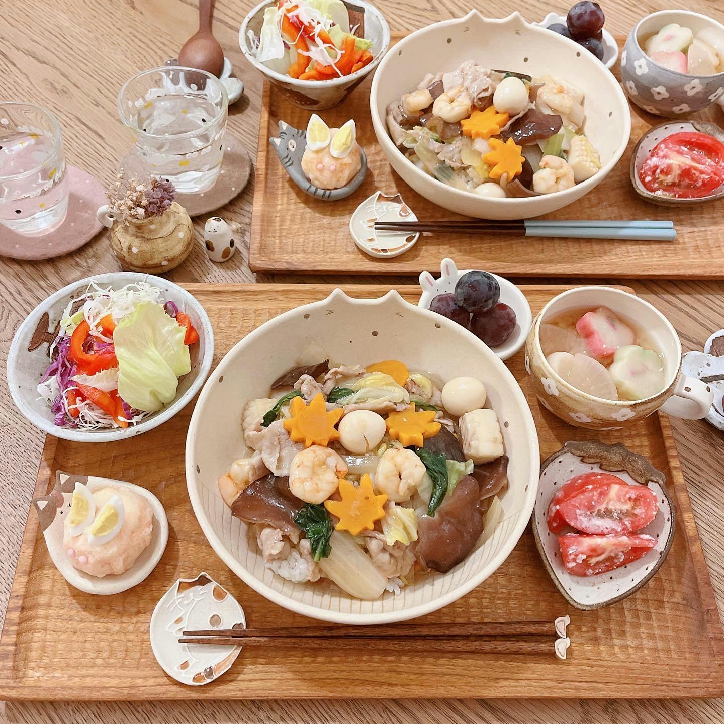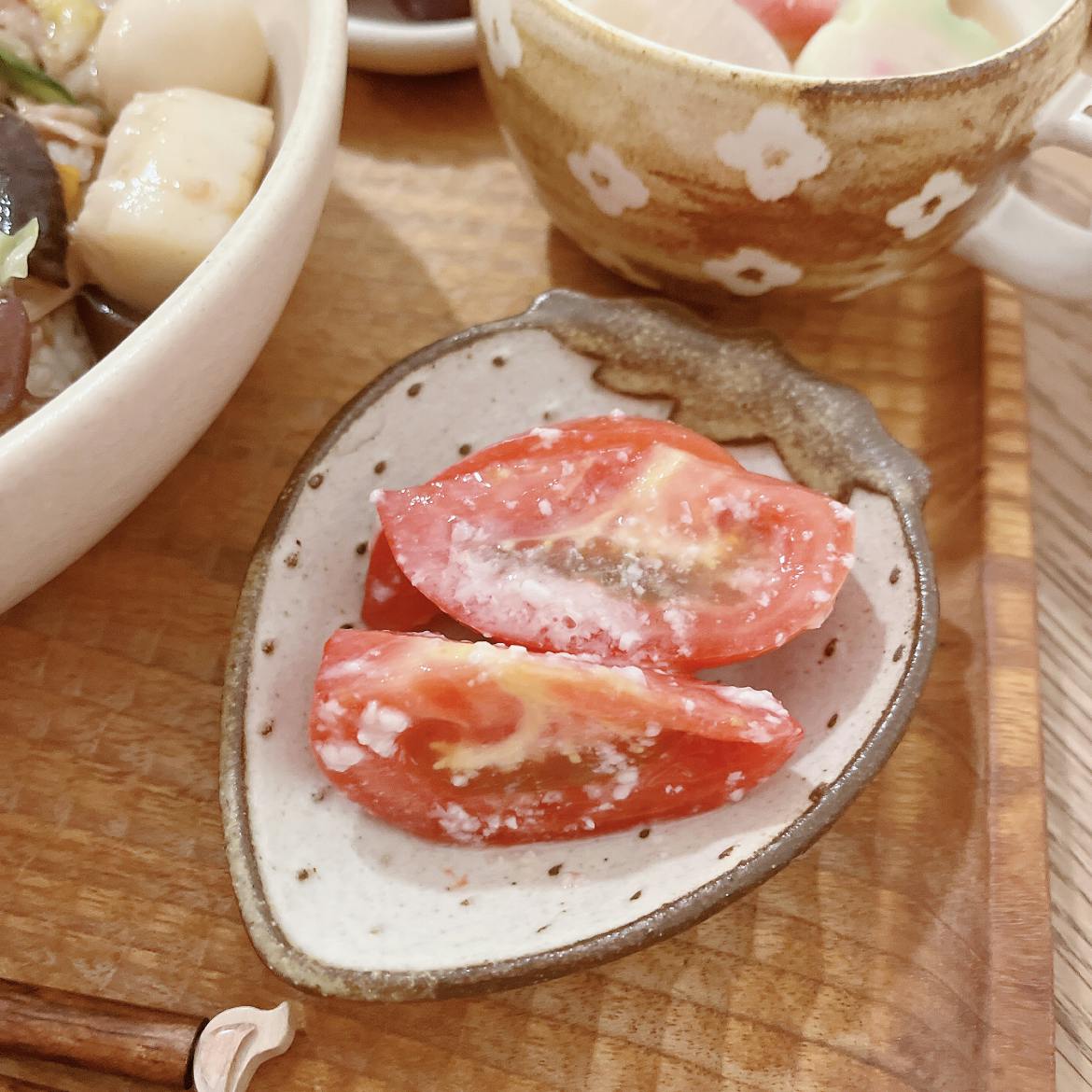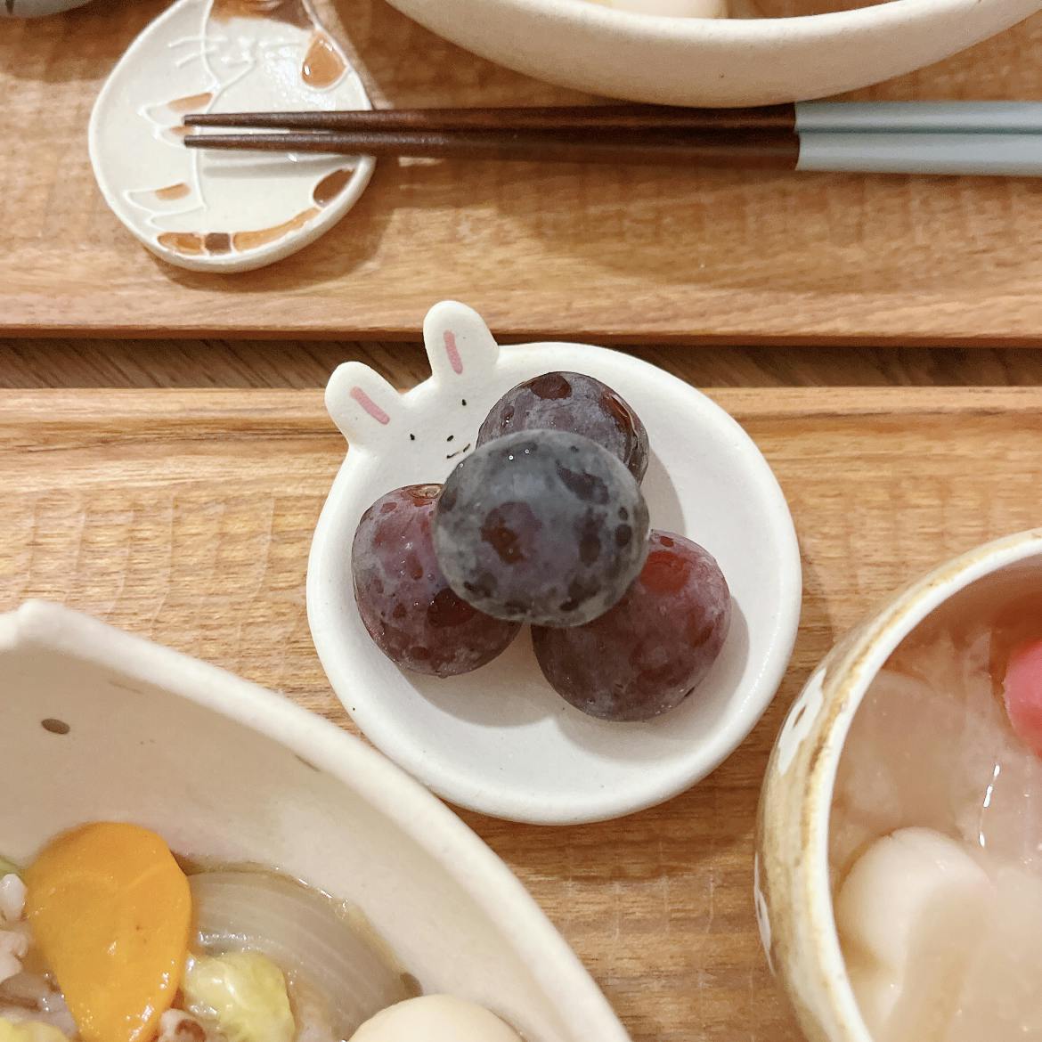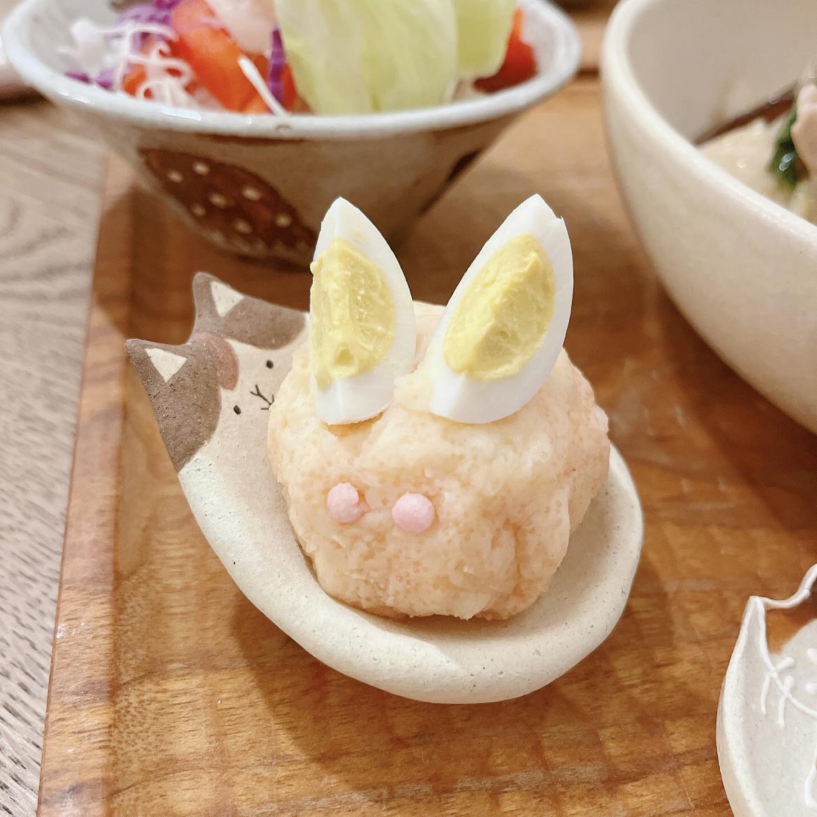 お腹いっぱい 🐇🌕 十五夜の日、残りのポテサラをうさぎさんにしてみました。