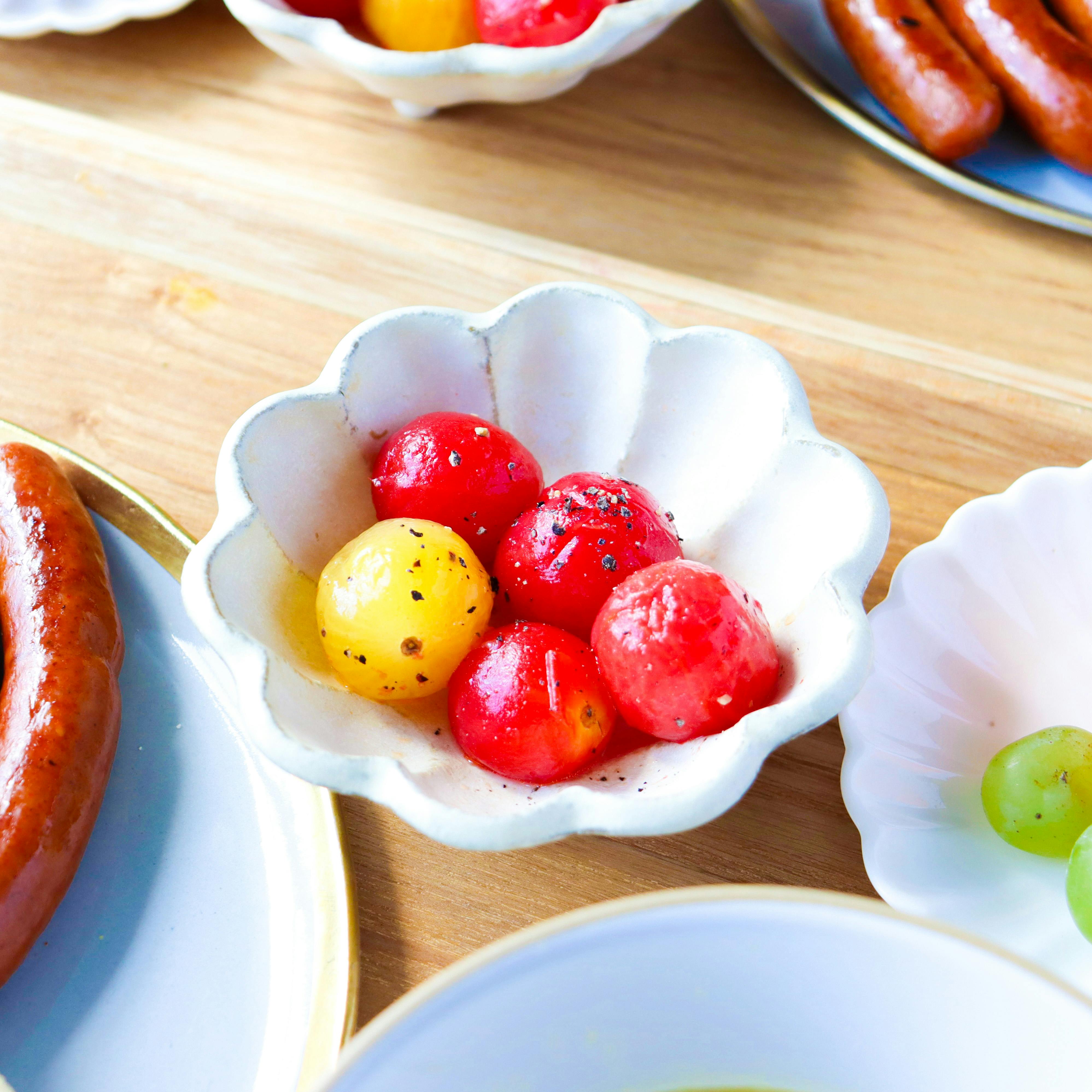 ꕤ パングラタン2種・ウインナー・ サラダ ꕤ ミニトマトのマリネ ꕤ ポタージュ ꕤ フルーツ