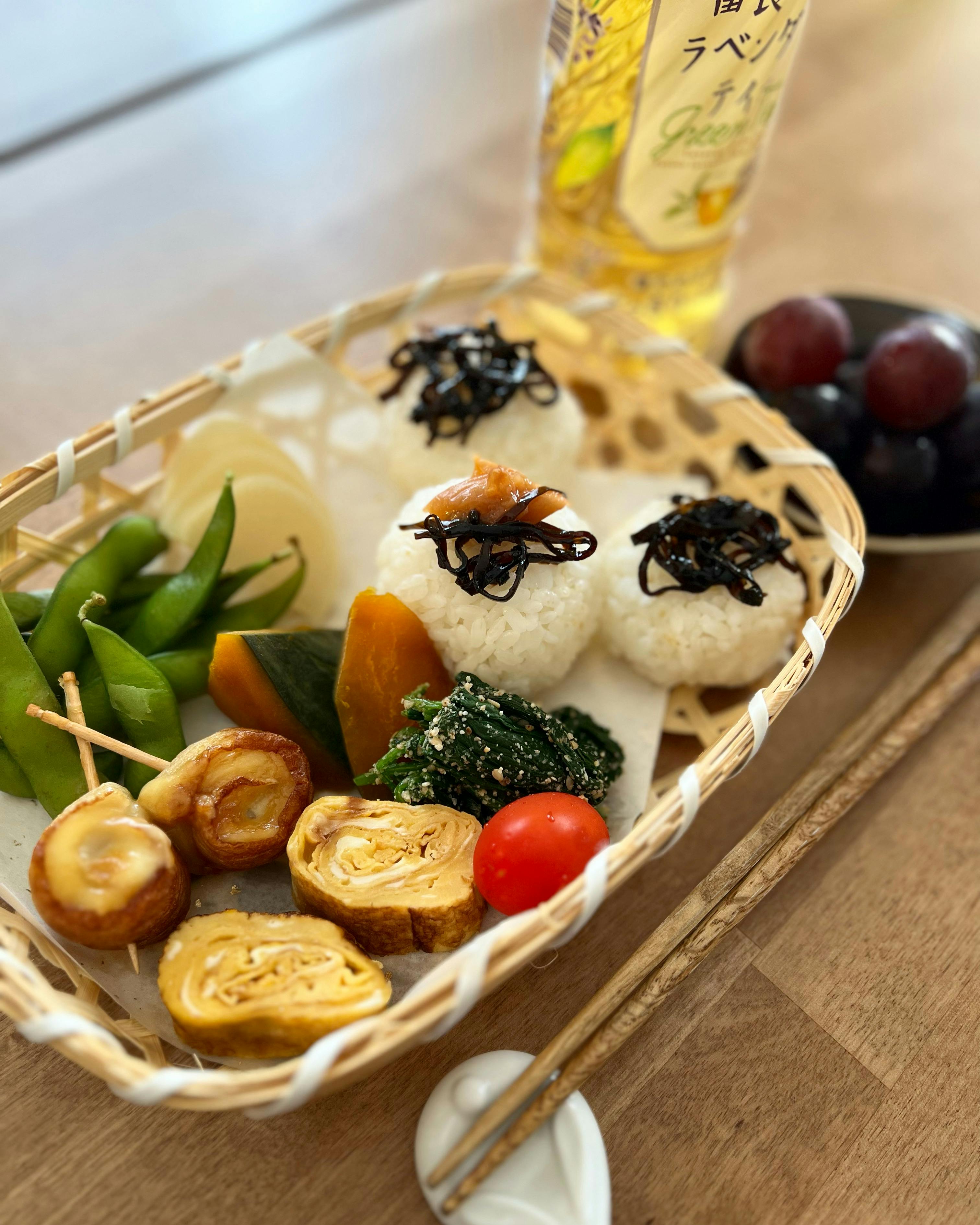 娘がお弁当の日だったので、その残りでお昼ご飯。 •しそ昆布おにぎり •枝豆 •卵焼き •かぼちゃの煮物 •ほうれん草の胡麻和え •ちくわチーズ