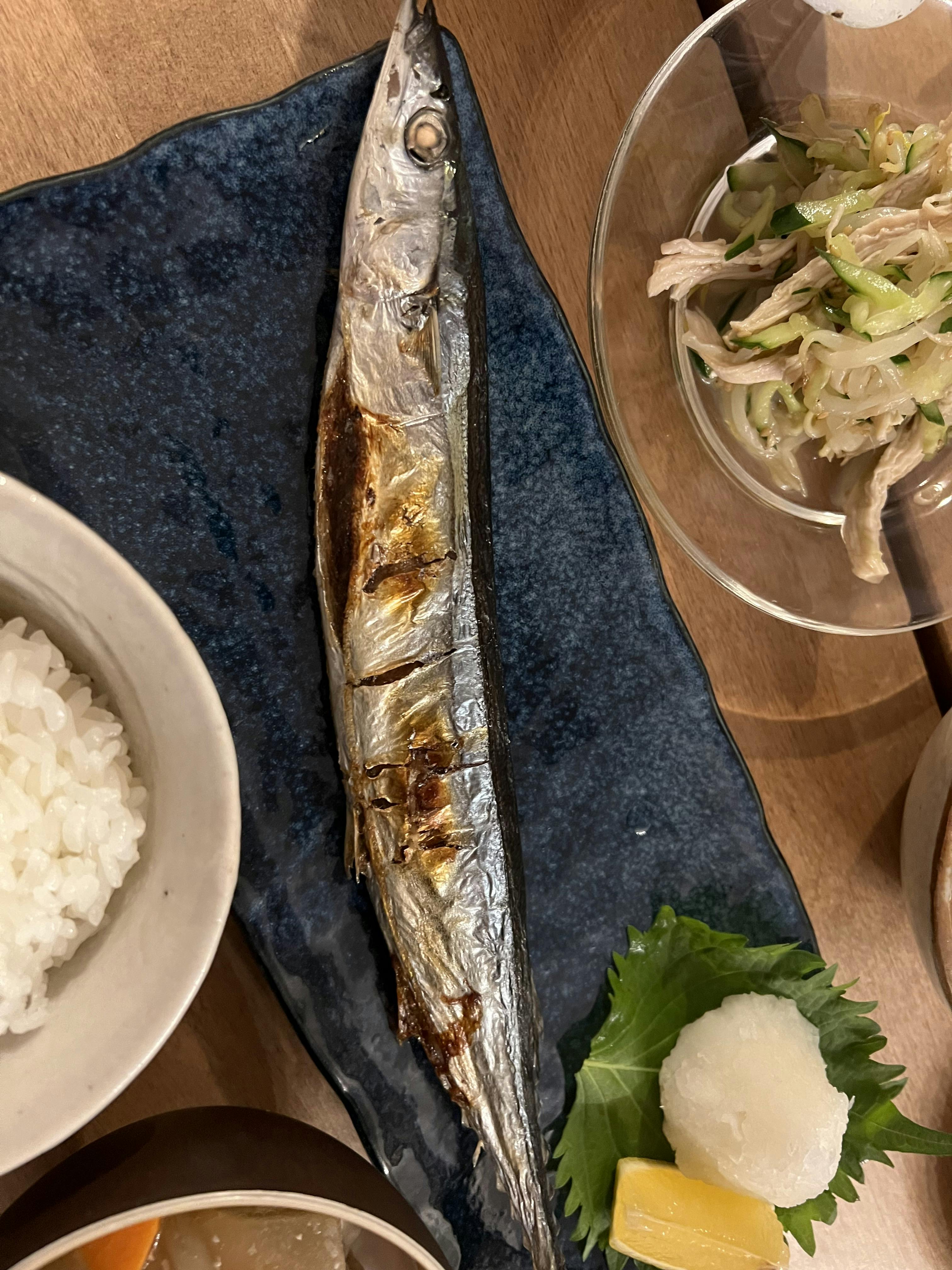 秋刀魚、ぎゅっと太い秋刀魚ではなかったけれど、久しぶりの秋刀魚はすごく美味しかったです。 肝がまた美味しい😋