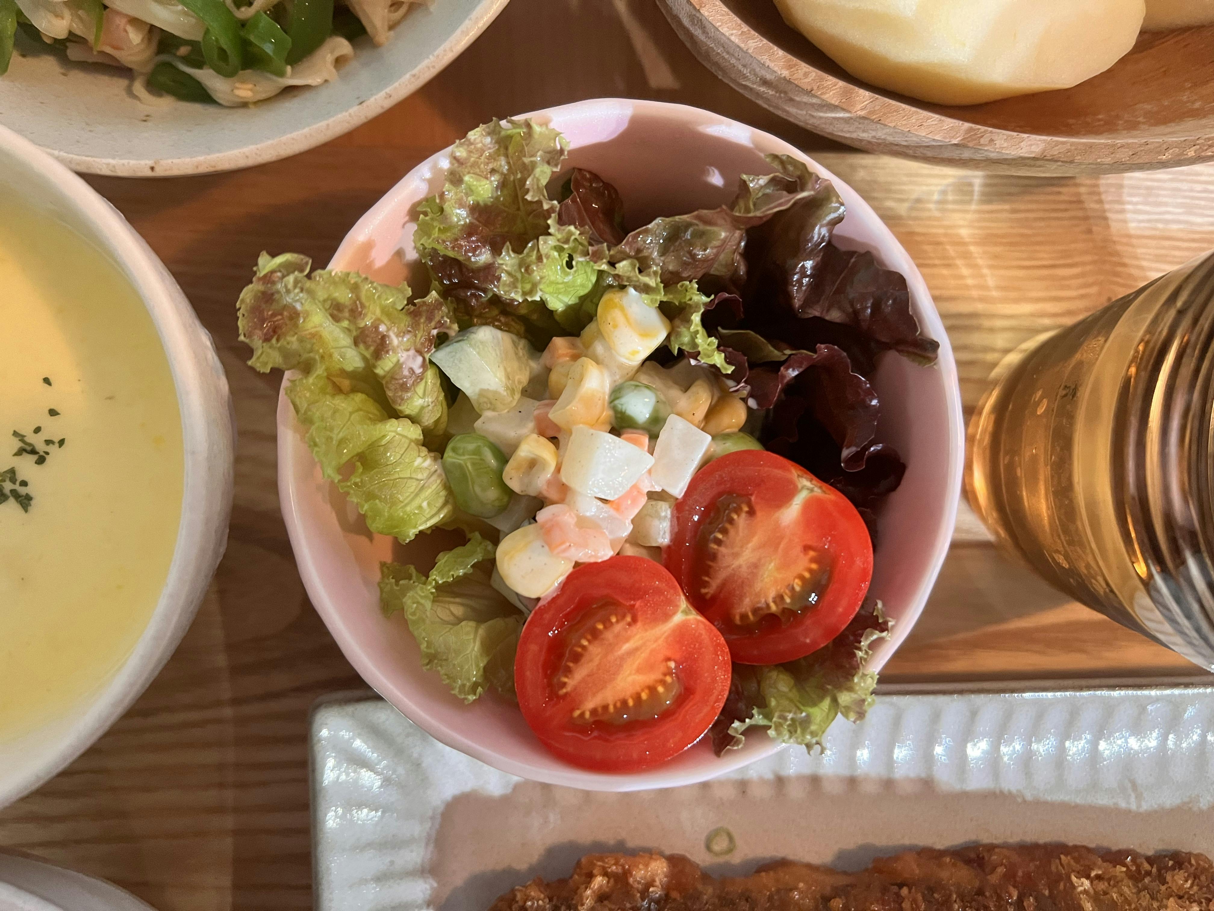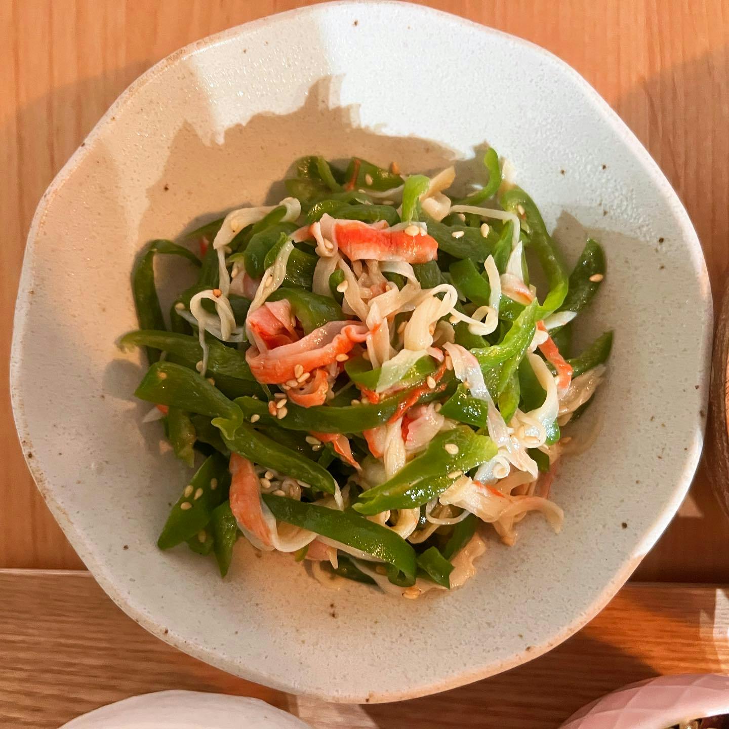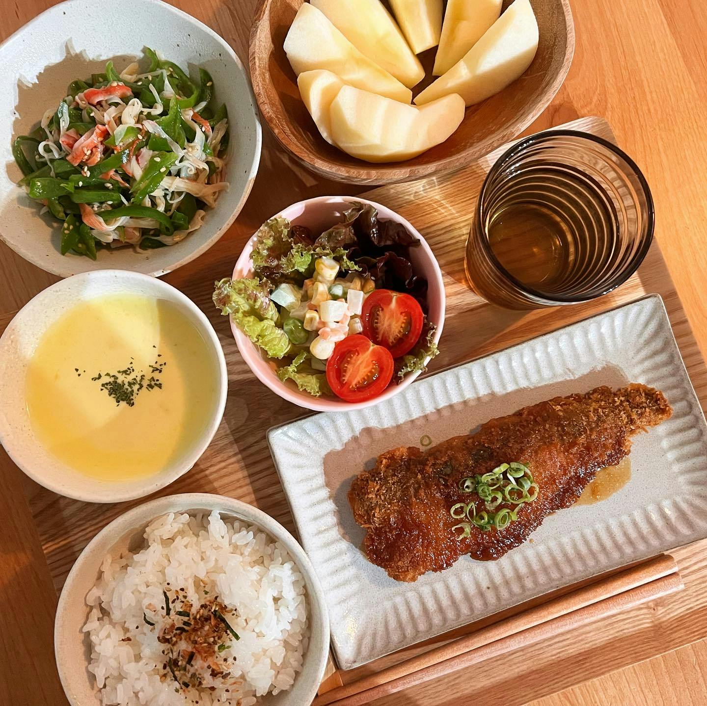 🐟🍋 𖧵さばのカツレツ和風レモン風味(生協) 𖧵コーンスープ 𖧵じゃがいもと枝豆のコロコロサラダ 𖧵カニカマとピーマンの無限和え 𖧵りんご _________ 「カニカマとピーマンの無限和え」は簡単レンジ調理 🙌🏻 息子も食べてくれてびっくりしました🦀🫑 :