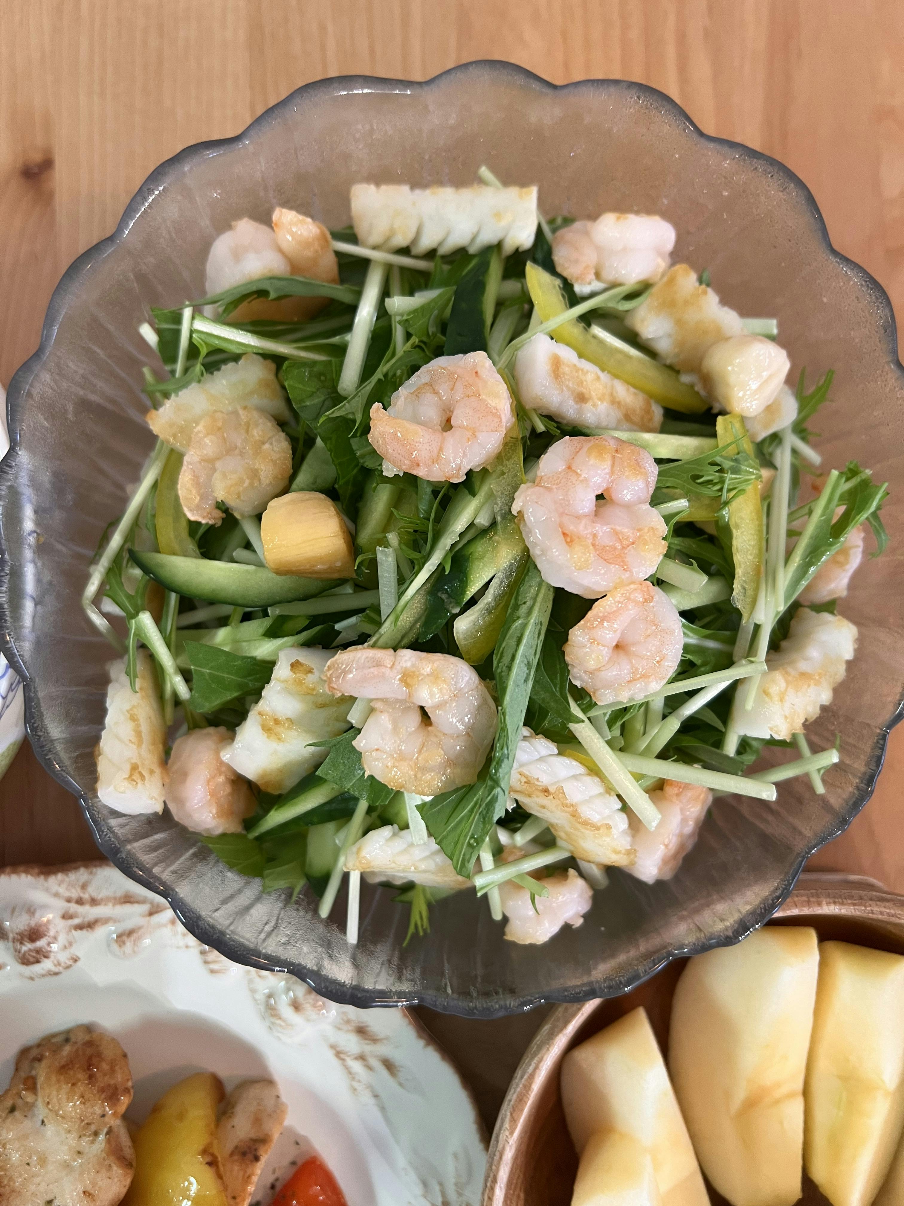 水菜とシーフードのサラダ