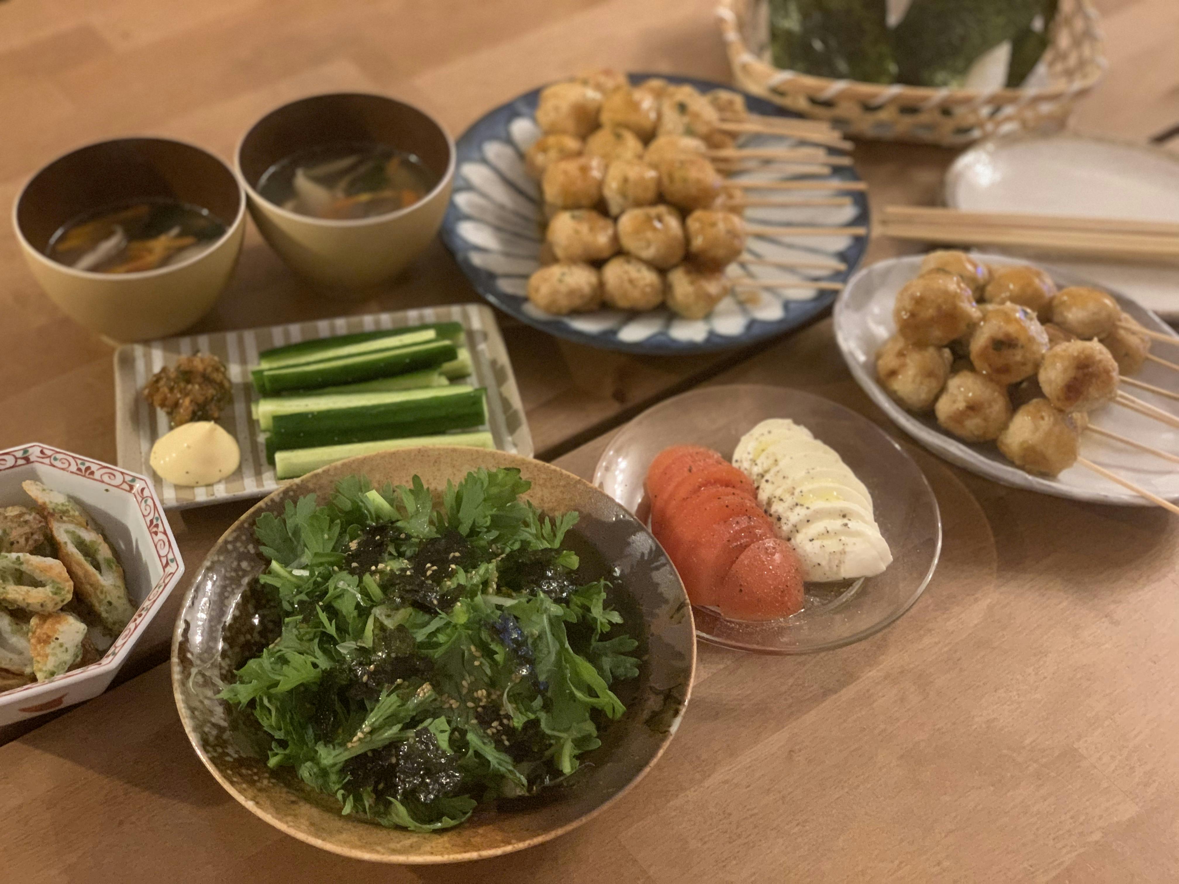 つくねは串に刺した方が子供達が喜びます!! つくねは軟骨入りとノーマルの2種類。 味付けも変えれば良かったですが食感が変わるだけでも楽しめました。 きゅうりの青唐辛子味噌。最近は切らすことなく常備してます!