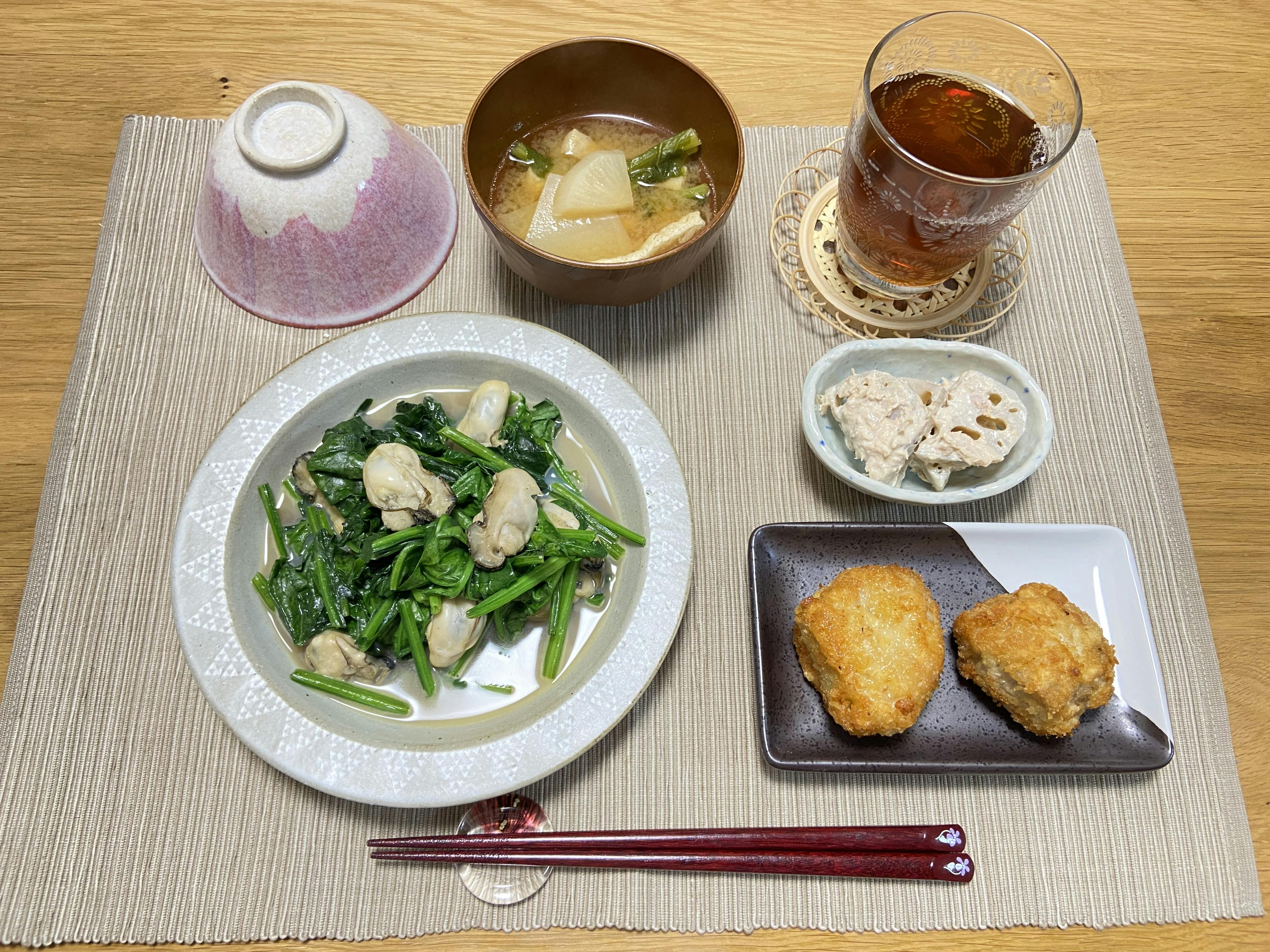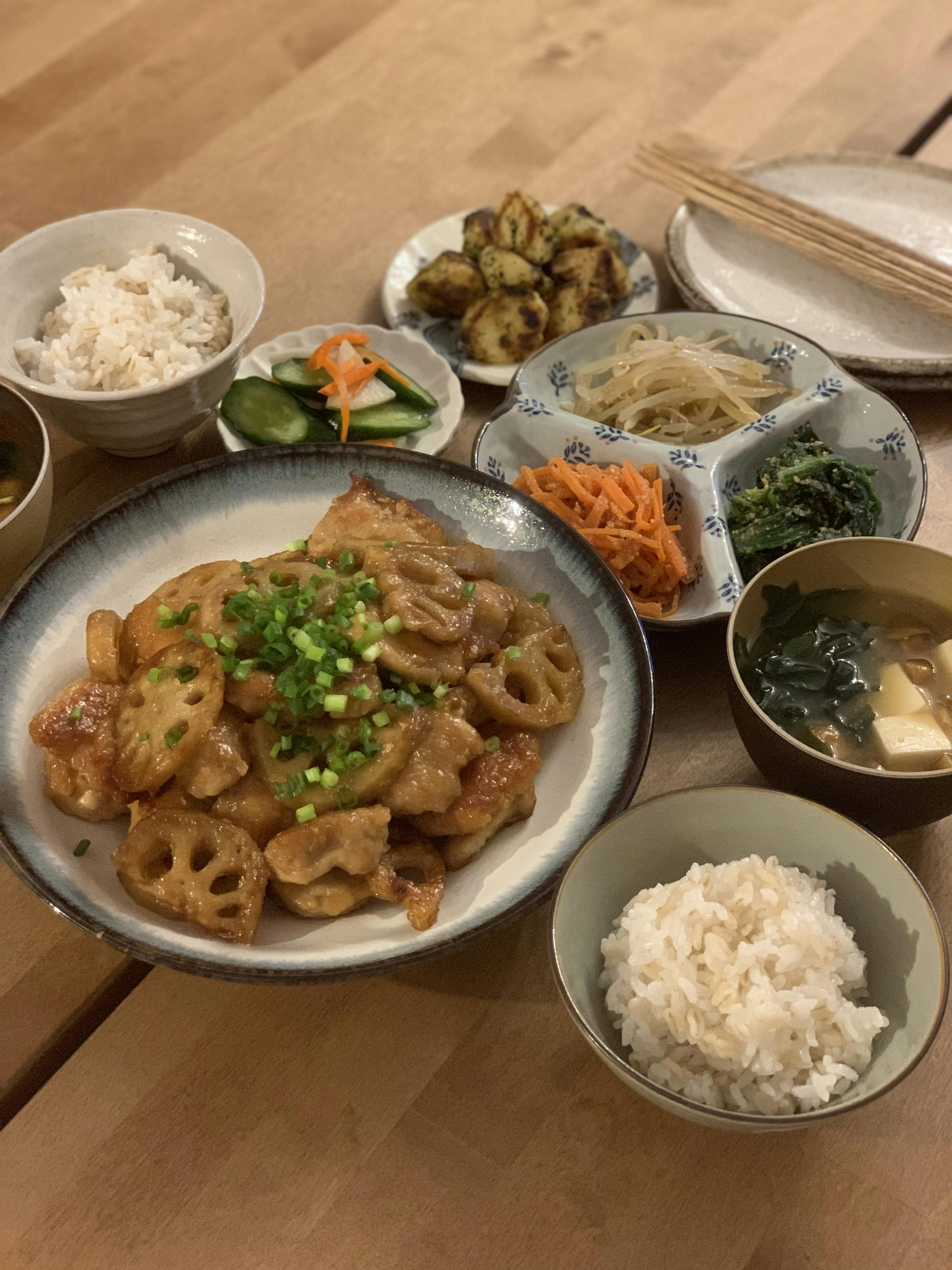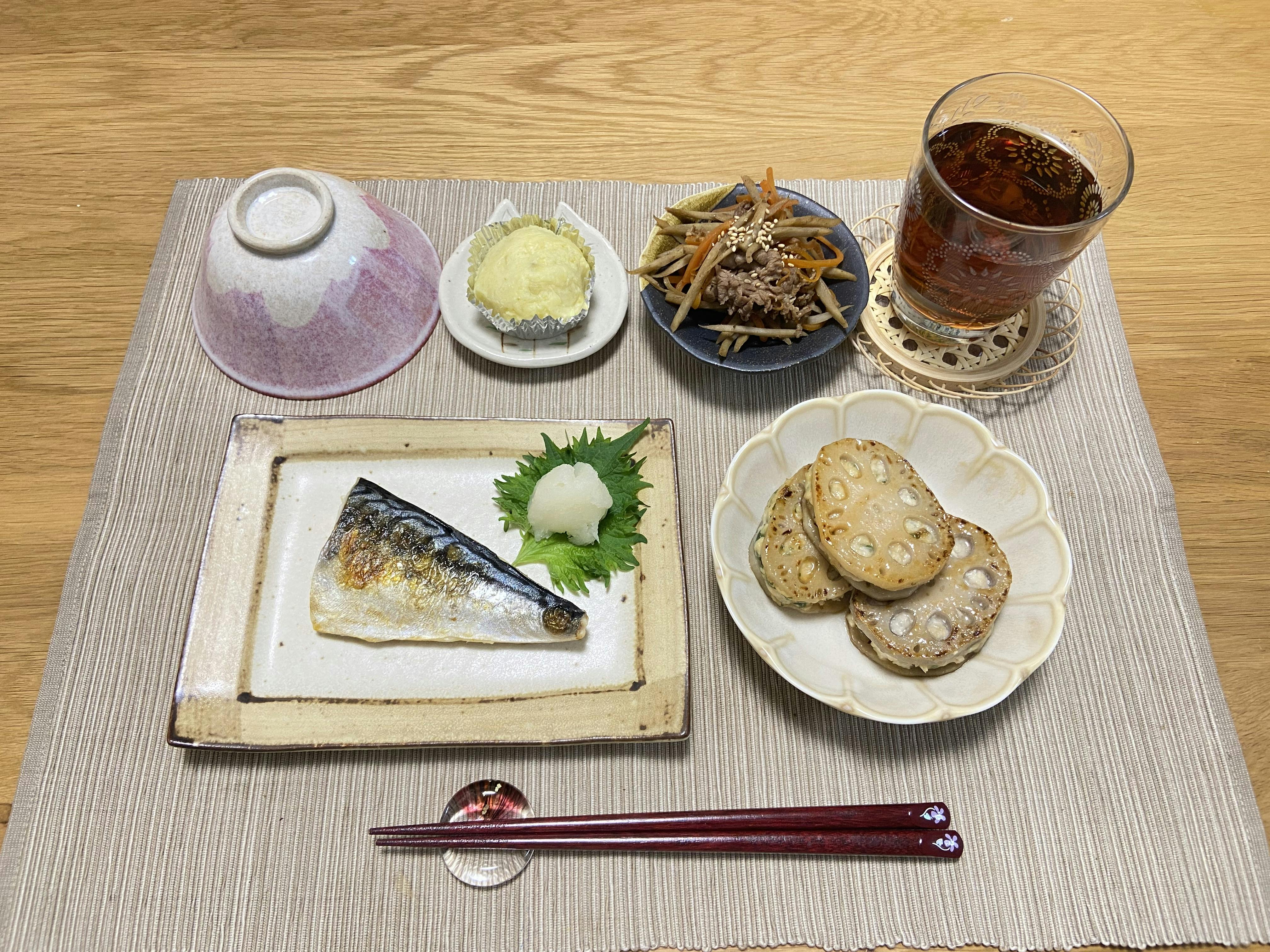ごぼう、人参、蓮根、大根と根菜をたっぷり使った和食の献立♡ 蓮根の挟み焼きは甘酢タレでさっぱり頂きます😋 我が家のきんぴらごぼうは鷹の爪でピリ辛の大人向けな味付けです!ご飯がとっても進みます😋🍚 レシピ貼っておきますね❣️