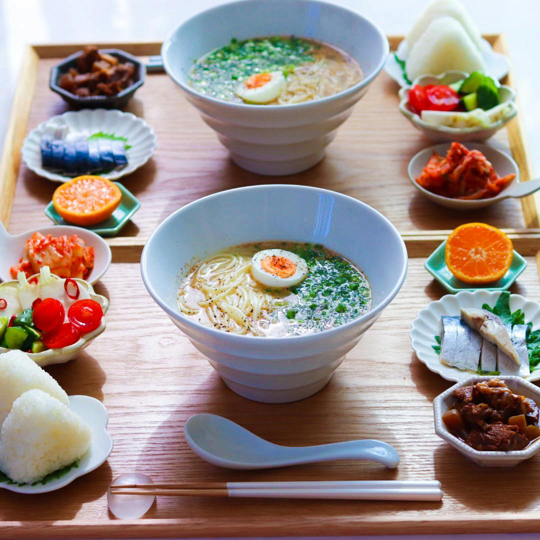 ꕤ 塩ラーメン風オカベ麺 ꕤ しめ鯖 ꕤ ピリ辛漬け ꕤ 牛すじどて煮 ꕤ キムチ ꕤ 塩むすび ꕤ フルーツ スープは、 鶏ガラスープの素・塩・にんにく・白ごま・ ごま油 で簡単に作れるので忙しい時にオススメ🤟 簡単なのに、 これが結構美味しくて。 サッポロ一番塩ラーメン超えたか!? って思うけど、 サッポロ一番塩ラーメンはアレはアレで 美味しい🥹💕 🍙は新米を土鍋で炊いて、 熱々のごはんをシンプルな塩むすびに。