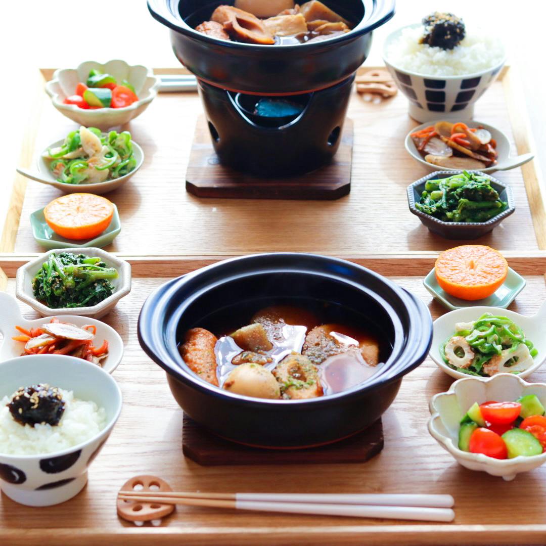 ꕤ 静岡おでん ꕤ 春菊の胡麻和え ꕤ きんぴらごぼう ꕤ ミニトマトときゅうりの白だし漬け ꕤ ちくわとピーマンのおかかマヨ和え ☜ レシピあり ꕤ ごはん ꕤ フルーツ 静岡おでんでごはんです🙌︎💕︎ ・こんにゃく ・ちくわ ・ごぼう巻 ・たまご ・大根 ・牛すじ ・黒はんぺん 具だくさんで嬉しい〜🙆🏻♀️✨ こちらは湯煎で6〜8分温めるだけでいただけます🙏 簡単に食べれるの本当嬉しい…🥹❤️ マツコの知らない世界でも取り上げられたとか! 詳しくはInstagramに載せてますので よろしかったら見てみてくださいね✨✨