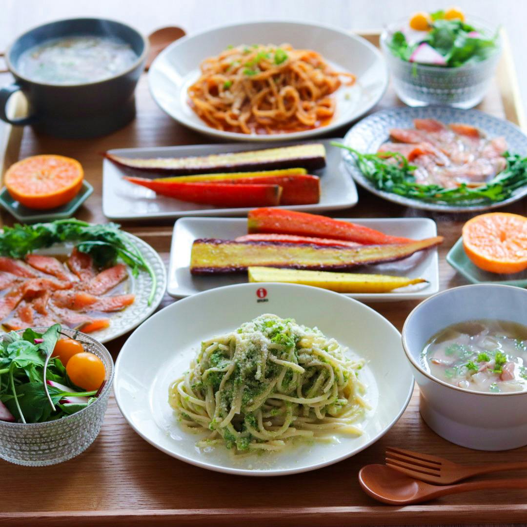 ꕤ パスタ ꕤ カラフル人参のグリル ꕤ サーモンのカルパッチョ ꕤ 野菜サラダ ꕤ パン ꕤ 里芋とベーコンのコンソメスープ ꕤ フルーツ パスタはホエイ生パスタ✨✨ 伊勢海老のクリームソース、 あおさとたらこのホエイクリームソース、 どちらも食べたかったので 夫と半分ずつ☺️︎💕︎ 伊勢海老のクリームソースのほうは、 糖質オフなんですよ〜😍 ホエイが入った麺は、 もちもちとしていて食べ応えあって美味しい!! 糖質オフの方は、 1食あたり211kcal😳 罪悪感なく食べれるの嬉しい…❤️❤️❤️ お味もしっかりしていて大満足🫶