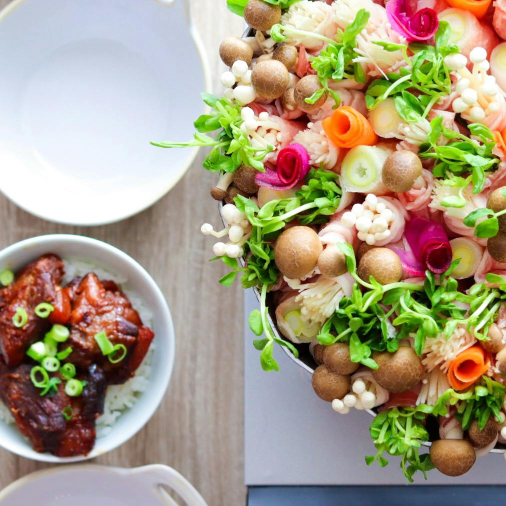 ꕤ れもん鍋 ꕤ 豚角煮のっけごはん おつゆは広島土産で買ってきた広島れもん鍋✨✨ さっぱりしててめっちゃ美味しかった……😍 野菜と肉どばーって入れようかと思ったけど そうすると夫がお肉ばっかり先に食べるから 巻き巻きすることに😇 この前より更に、もさもさばっさばっさに なってしもうた……💦💦 やっぱり急いで作るとダメね……