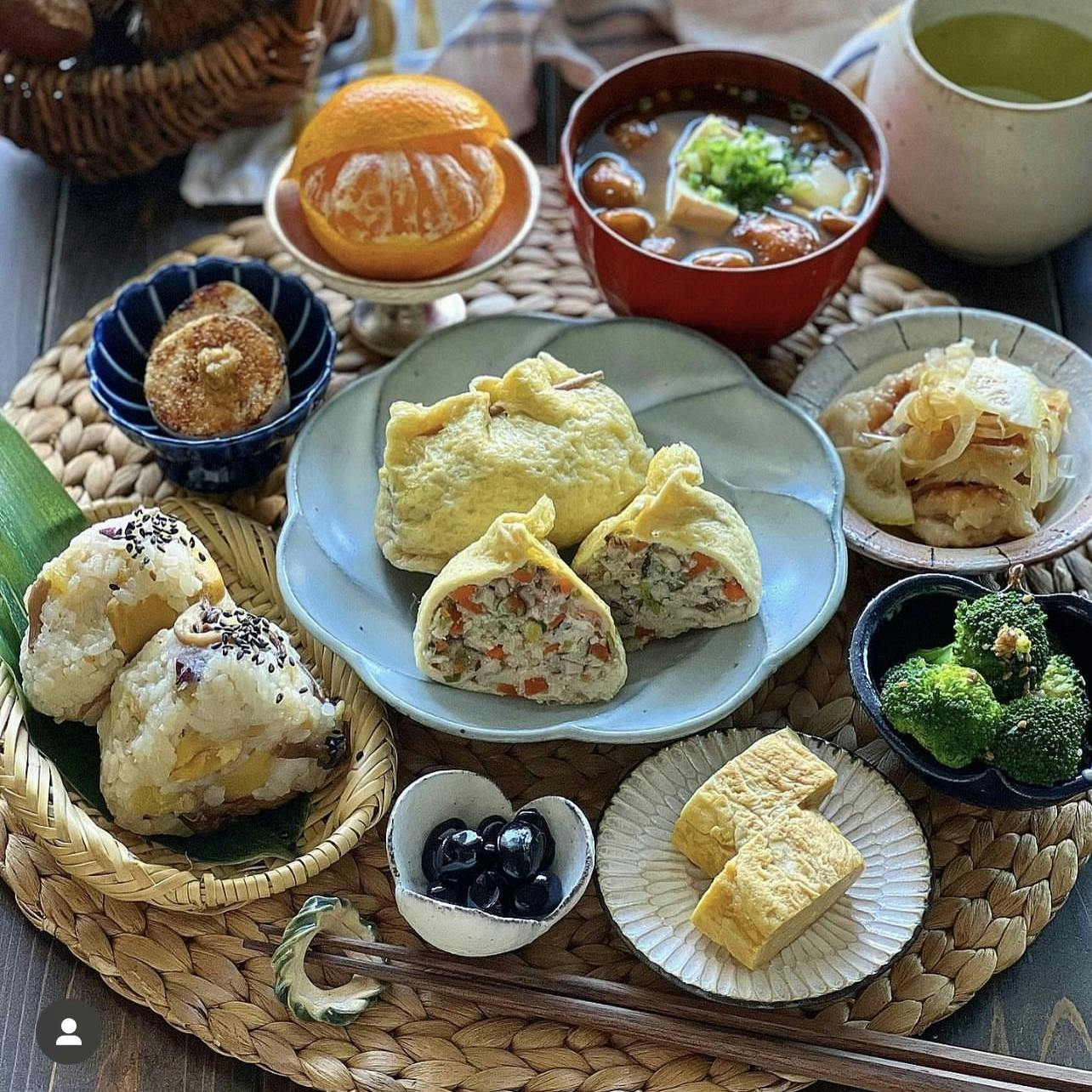 #和定食風ごはん ❁ 栗と木の子の炊き込みご飯おにぎり ❁ なめこと豆腐の味噌汁 ❁︎ 鶏挽肉と豆腐の彩り袋煮 ❁︎ 鶏むね肉のさっぱりレモン蒸し ❁︎ ブロッコリーの胡麻和え ❁︎ 長芋のステーキ柚子胡椒添え ❁︎ だし巻き卵 ❁︎ 黒豆煮 ❁︎ みかん🍊 彩り袋煮のレシピ載せています。 ヘルシーで美味しい一品です。 簡単にできますのでよかったら使ってみてくださいね。